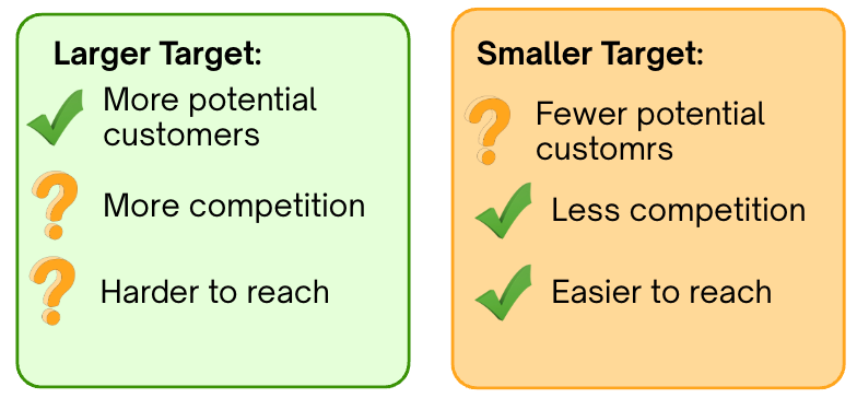 This is called your Addressable Market, the total number or sales value of potential customers.  There are trade-offs involved: